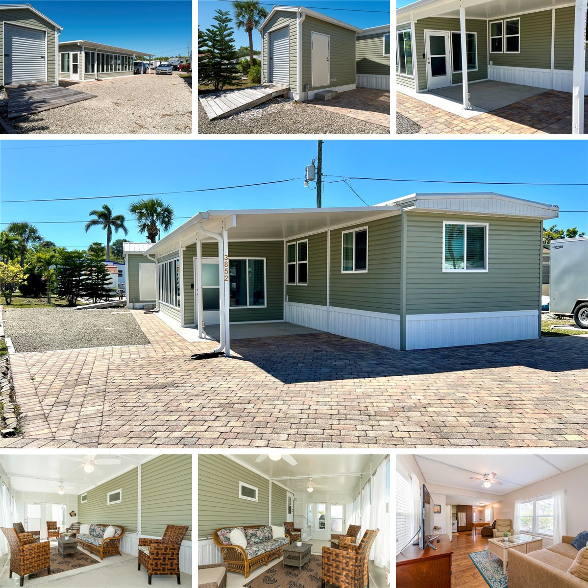 Incredible Location in Bonita Springs! Rare opportunity to own a piece of PARADISE just 2 miles to the white sandy SW Florida beach! This spacious 2 BED 2 BATH manufactured home in the charming Bonita Park Trailer Park w/split floor plan & washer & dryer in residence is being sold furnished with coastal feel & many UPGRADES! NEW Windows, AC, Electrical Panel, Laminate Wood Flooring in the Main Living & Kitchen, Stove, Water Heater, Dryer, Washer, Front Door, Flooring in Main Bath, Blinds, a beautiful Paver driveway w/extra parking & w/small patio ready for your grill! Newer Large Outdoor Living Lanai space fully enclosed w/Windows (not under AC), a great place to relax & entertain your friends & family! Extra BONUS this property comes with a Storage Shed with lots of room to store golf cart, bikes, kayaks, beach chairs, golf clubs, boating & fishing gear, tools & more! Bonita Beach Trailer Park is a small 55 + Co-op celebrating 30 years this year! The low monthly fee includes community lawn care, water, sewer, centralized trash pickup, and amenities which include: clubhouse, pool, close to public boat ramp, shuffleboard, pickleball, a common laundry room. Very active activities calendar that includes mens & ladies horseshoes, corn hole, bingo, Yoga, Mahjong, Aquasize, Line Dancing, Movie Night & Social Events! It's a great time to BUY! Spend your winters in this charming BBTP Paradise or live full-time & enjoy all that SW Florida has to offer!